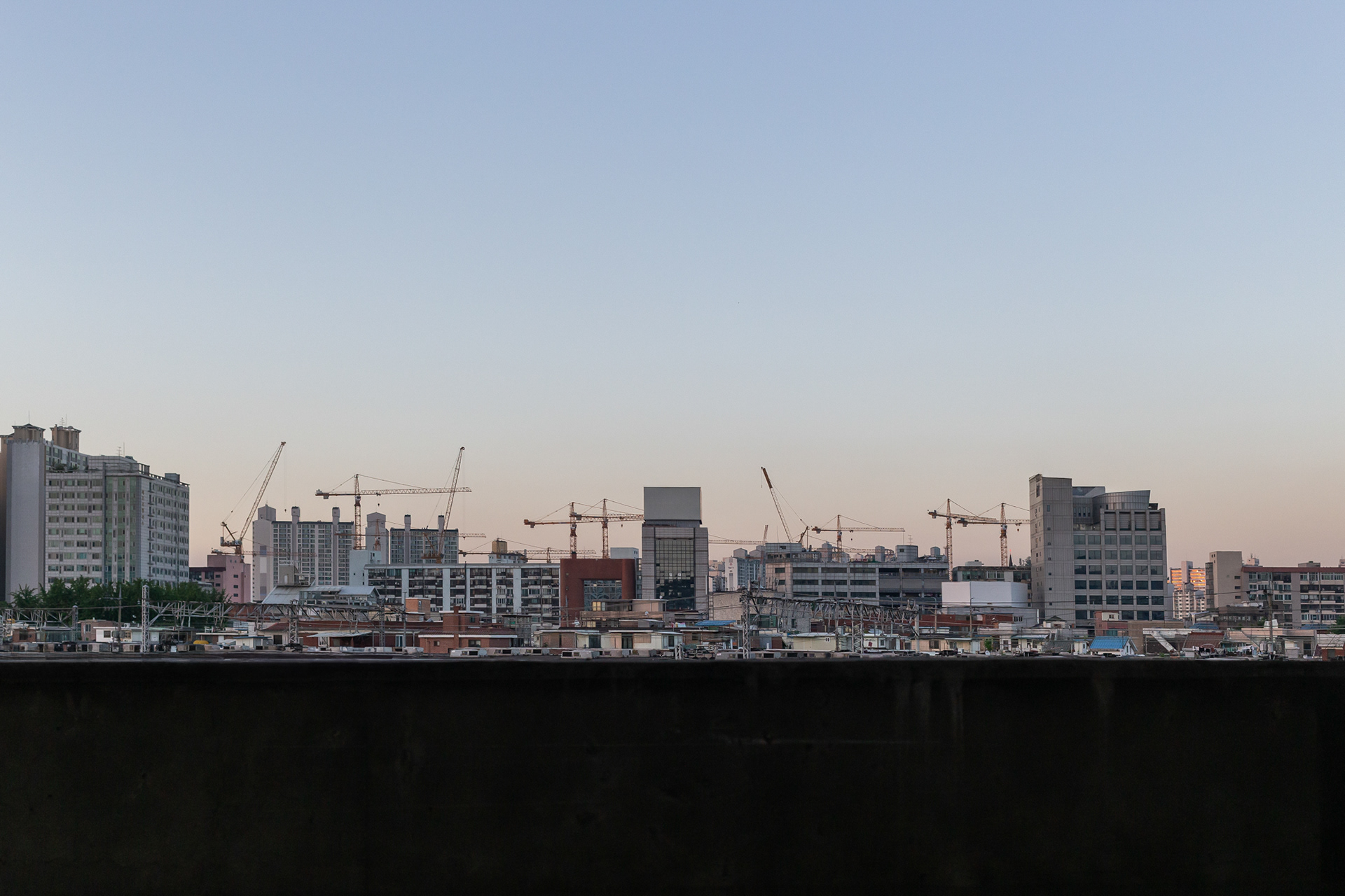 우리는 지금도 크레인에 의한 새로운 풍경들을 날마다 새롭게 맞이하고 있다. 나는 풍경 사진이 단순히 경치를 기록하는 것을 넘어, 한 시대를 이야기하고 그 시대를 살아가는 인간의 흔적과 미래를 보여주는 가장 강력하고 진실한 도구라고 믿는다. 풍경은 우리가 살아온 방식과 현재의 욕망, 그리고 앞으로 나아갈 방향을 거울처럼 비추고 있기 때문이다. 나의 사진적 시도는 계속되는 도시개발의 풍경을 바라보며 '우리는 지금 어디에 서 있고, 어떤 미래를 향해 나아가고 있는가?'라는 근본적인 질문을 하고 있는 것이다. 이는 개발과 보존이라는 두 상반된 가치에서 어떻게 균형점을 맞출 것인가에 대한 질문이기도 하다.